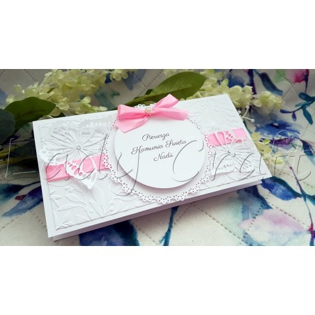 Kartka komunijna z motylkami dla dziewczynki.